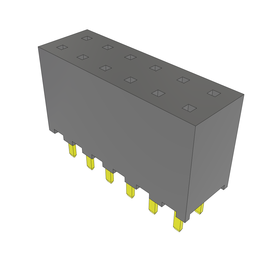 2mm 12 Pos Gold Socket Strip Receptacle, Straight, Thru-Hole