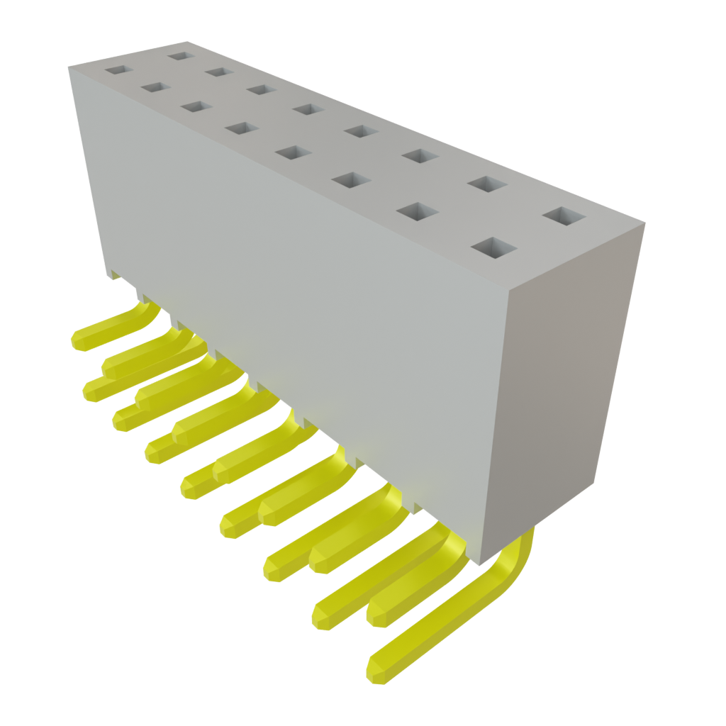2.54mm RA Socket Strip, 16 Pos, 2 Rows, Gold, 7.6A