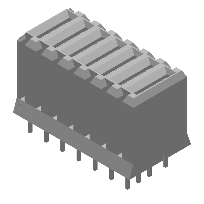 7 Pos Power Header, 10A, 250V, Right Angle, Through Hole, Press-Fit