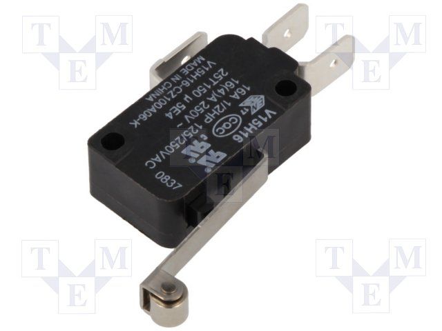 Switch Snap Action N.O./N.C. SPDT Long Straight Lever Quick Connect 16A 250VAC 372.85VA 0.29N Screw Mount