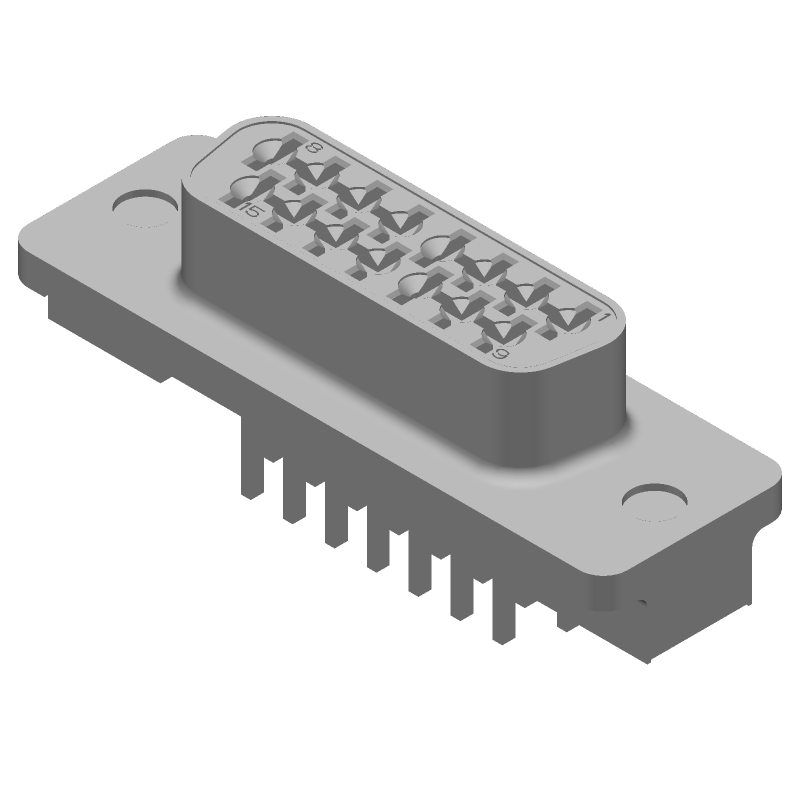 15P HD D-Sub SMT Connector, Right Angle, Gold/Tin Plated