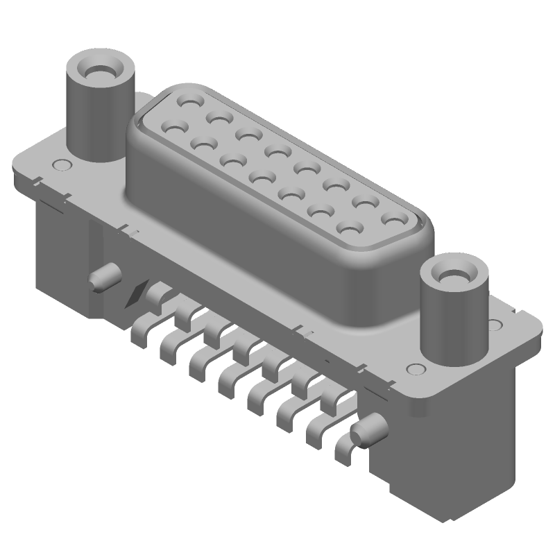 15P HD D-Sub SMT Connector, Right Angle, Gold/Tin Plated