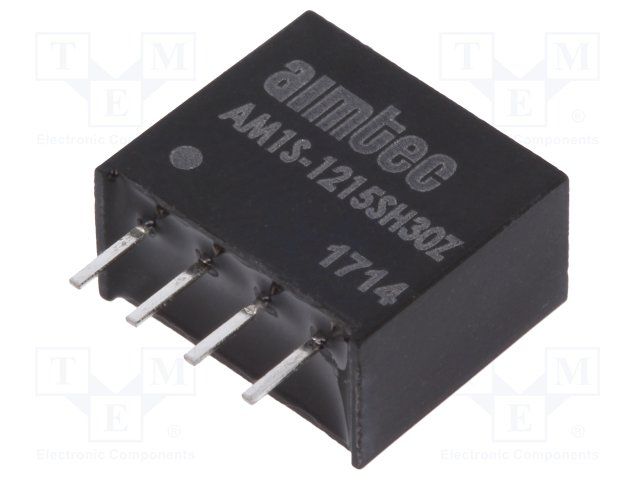 DC/DC Converter; Product Weight (grams): 1.5; Input voltage min (V): 10.8; Input voltage max (V): 13.2; Output voltage min: 15; Output voltage max: 15; Output voltage dual assymetric (y/n): Single; Output Power (W): 1; Max Output current (A): 0.0666; Efficiency (%): 79; Max Capacitive load (µF): 220; Package type: SIP4; Mounting: PCB; W (in): 0.24; L (in): 0.46; H (in): 0.4; W (mm): 6; L (mm): 11.68; H (mm): 9.7; Min Operating temperature: -40; Max operating temperature (°C): 85; Isolation (VDC): 3000; EMC compliance 2: EN 55032 Class B; Case material: Plastic (flammability to UL 94V-0) ; Application 4 (building automation/IoT): 1; MTBF (h): 1121000; Derating : 85; Voltage Accuracy (%): ±3; Line Regulation (% of Vin): ±1.2% per 1% Vin Change; Load Regulation %: ±10; Ripple & Noise (mV p-p): 100; Switching Frequency typ (KHz): Variable 80; Short circuit protection: Momentary
